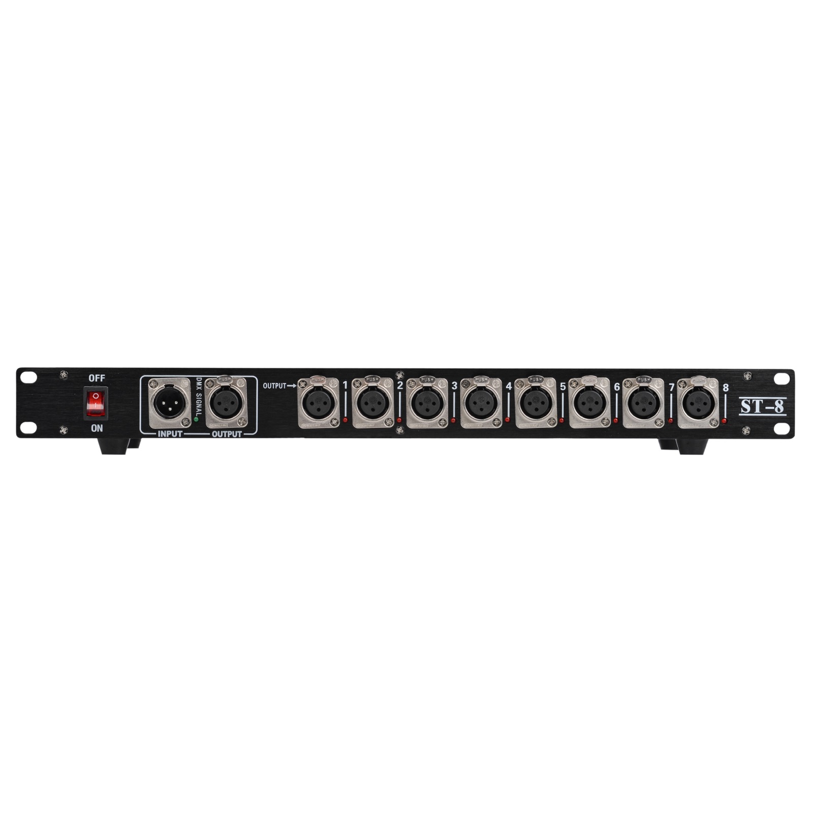 DMX SPLITTER ST-8 — это универсальный splitter, монтируемый в рэковую стойку, который имеет в 8 изолированных полос с усилением сигнала.